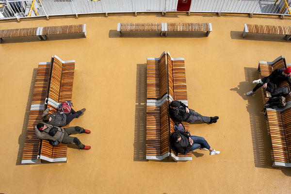 Weiter geht es per Fähre auf die Insel Senja. Sie ist die zweitgrößte Insel Norwegens und gehört zur Fylke Troms og Finnmark. Damit sind wir etwa 350 km nördlich des Polarkreises. Die Sommer sind hier kurz. Wir haben davon 2 Tage abbekommen und genießen die Landschaft bei 15 Grad und Sonne. Das nehmen die Norweger zum Anlass Shorts, T-Shirts und Sandalen raus zu holen. Nur wenige Busgruppen legen hier einen Zwischenstopp ein. Dafür haben die Camper diese Idylle für sich entdeckt. Wir bewegen uns auf der Landschaftsroute Senjas. Auf der schwebenden Aussichtsrampe Bergsbotn zücken wir unseren Fotoapparat, um die beeindruckende Rundumsicht auf Fjord und Fels festzuhalten. Kurve um Kurve windet sich die Route an der rauen Nordwestkante Senjas entlang. "Zähne des Teufels" werden die Gipfelspitzen der majestätischen Bergwelt auch genannt. Und das ist es wieder – die Kunst am Bau mit extravagantem Toilettenhaus. Dieses Mal glänzt ein goldenes Toilettenhaus am Rastplatz Ersfjordstrand in der Sonne. Das Häuschen ist mit Aluminiumschindeln umkleidet und verfügt sogar über eine Außendusche – für hart gesottene Badegäste, die nach kurzem Sprung ins kalte Nordmeer des Salzwassers loswerden möchten.